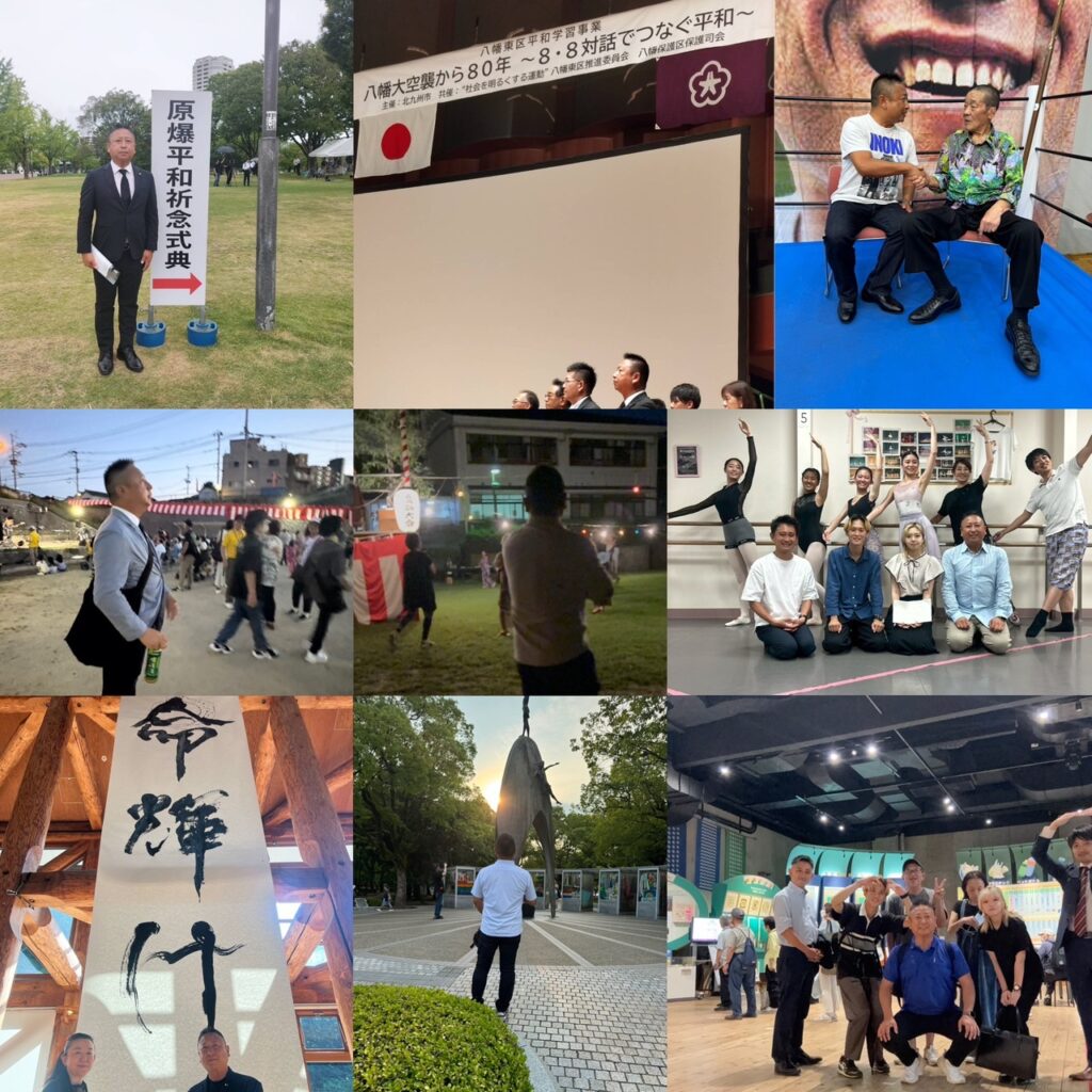 8月8日は戦後80年目の八幡大空襲の日でした。小伊藤山公園での慰霊祭の後、響ホールでは「8.8対話でつなぐ平和」の事業が開催され参加しました。今年は八幡東区内の12の市民センターが各々の平和学習を実施されました。戦争体験者による語りべが少なくなってきており、次代へ伝承していく重要性を感じます。