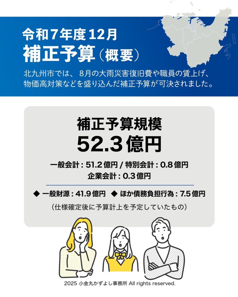 北九州市議会12月定例会において、52.3億円規模の補正予算が審議可決しました。